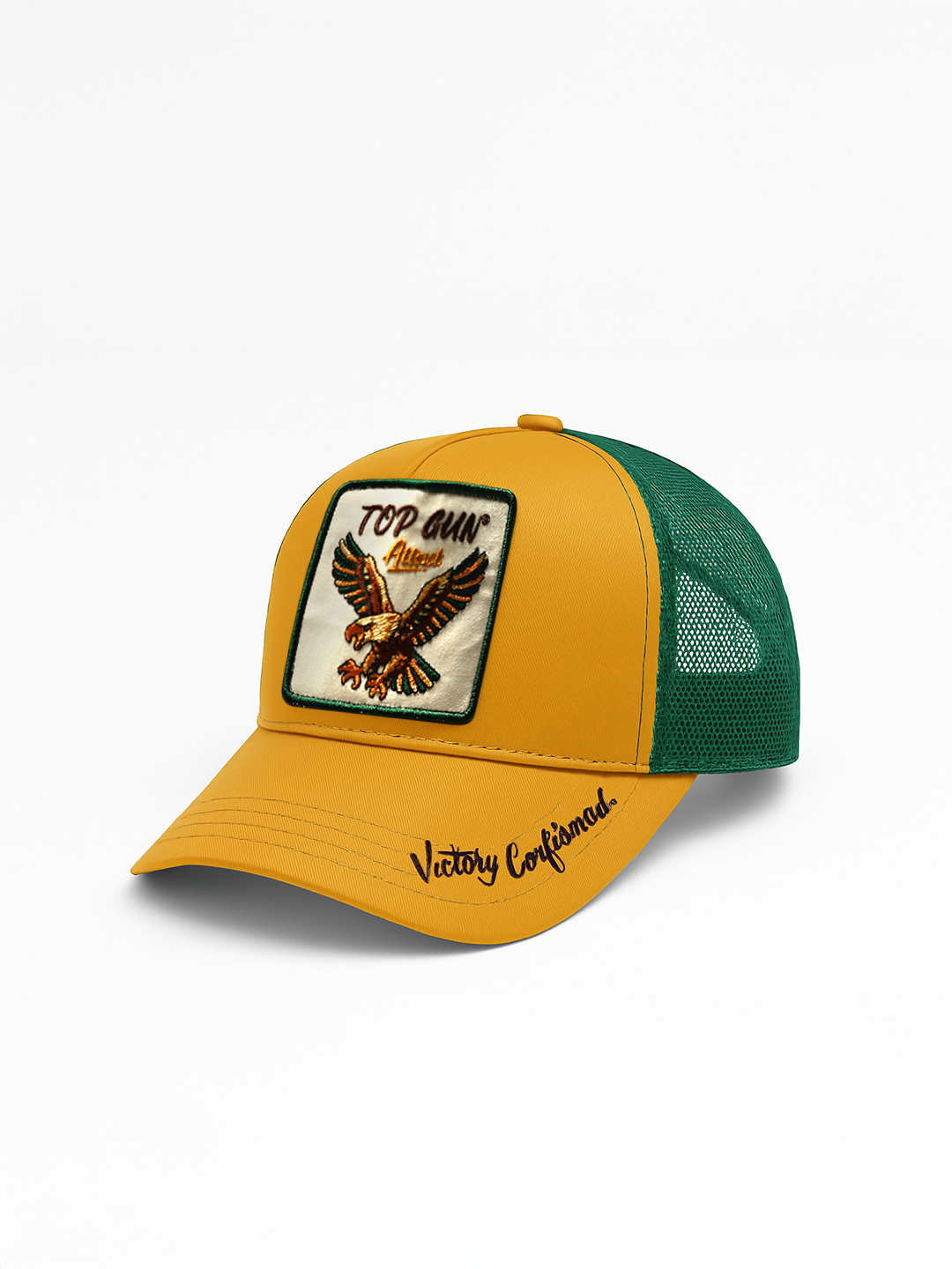 Mission-ready — but make it luxurious. This smooth satin cap turns heads with TOP GUN ATTACK stamped across the crown and a full-spread eagle flexing its wings in command. The back features an adjustable plastic snapback for a custom fit. A final power move sits on the visor — “Victory Confirmed” embroidered underneath — because this hat doesn’t just show up… it shows you already won.