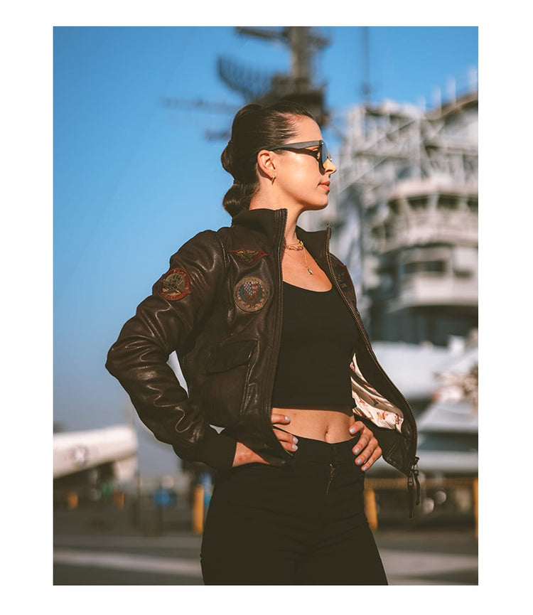 MISS TOP GUN® VINTAGE LEATHER JACKET WITH PATCHES