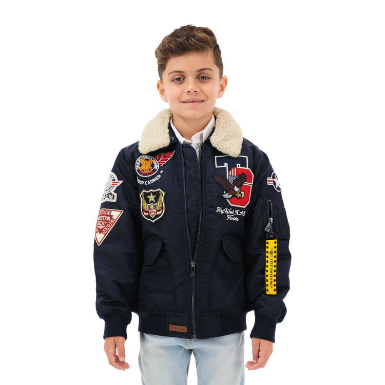 Our Top Gun Kids' Eagle is inspired by the CWU-45 originally designed for military aviators and aircrew. It's been personalized to showcase the eagle representing freedom, strength, and courage. This jacket is designed to provide warmth and comfort in cold weather conditions.